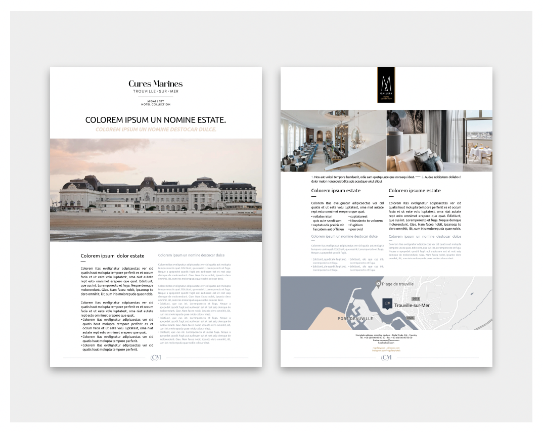 Elegant, contemporary with nod to the nostalgia and heritage of the seaside Normandy location. Visual identity and full brand collaterals, advertising and merchandise.